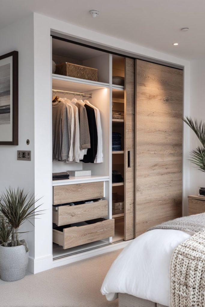 1. Custom Built-In Wardrobe with Sliding Oak Doors