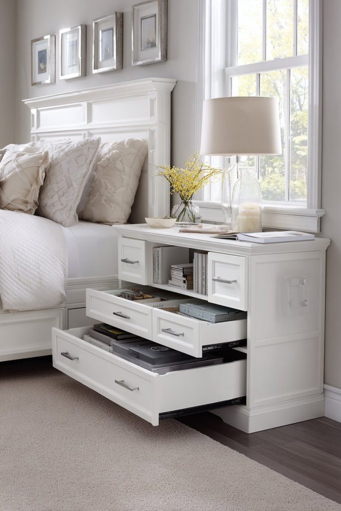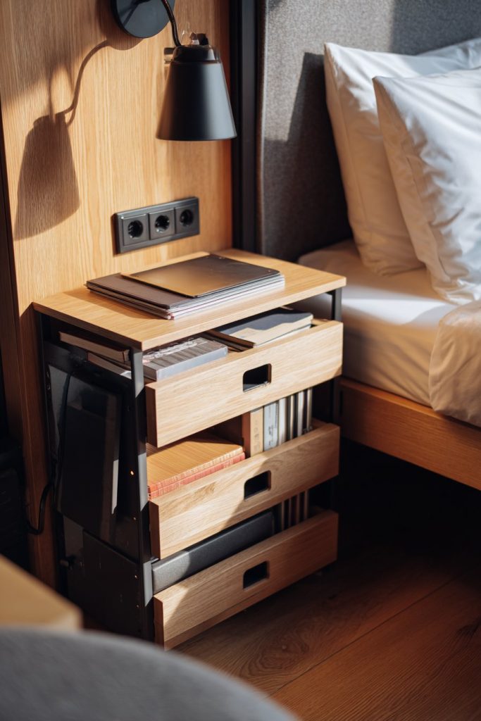 • Ensure drawer and compartment sizes accommodate typical bedside items