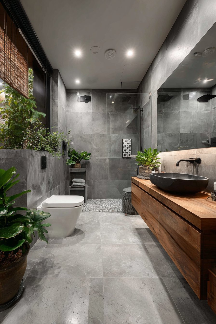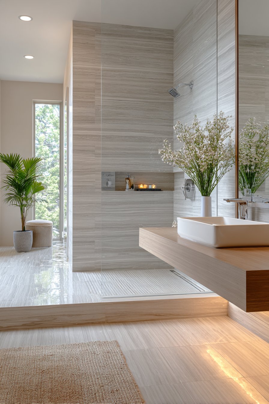 The strategic use of materials amplifies this expansive feeling. Large-format tiles with minimal grout lines create seamless surfaces that enhance spatial perception. When the same flooring material extends throughout the entire room, including the shower area, boundaries disappear. This continuity is especially powerful when combined with consistent wall treatments that guide the eye upward rather than stopping at partition lines.