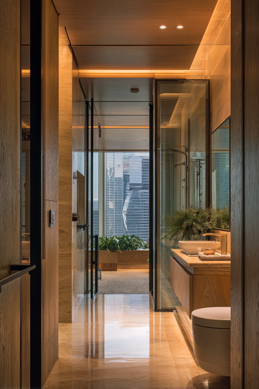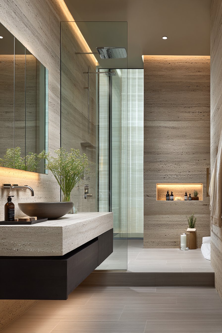This design philosophy emphasizes spatial continuity rather than division. You’ll notice the absence of shower curbs, doors, or curtains that typically fragment bathroom space. Instead, glass panels or partial walls may define the shower zone while maintaining visual flow. The result is a bathroom that feels more like a cohesive room than a collection of separate fixtures.