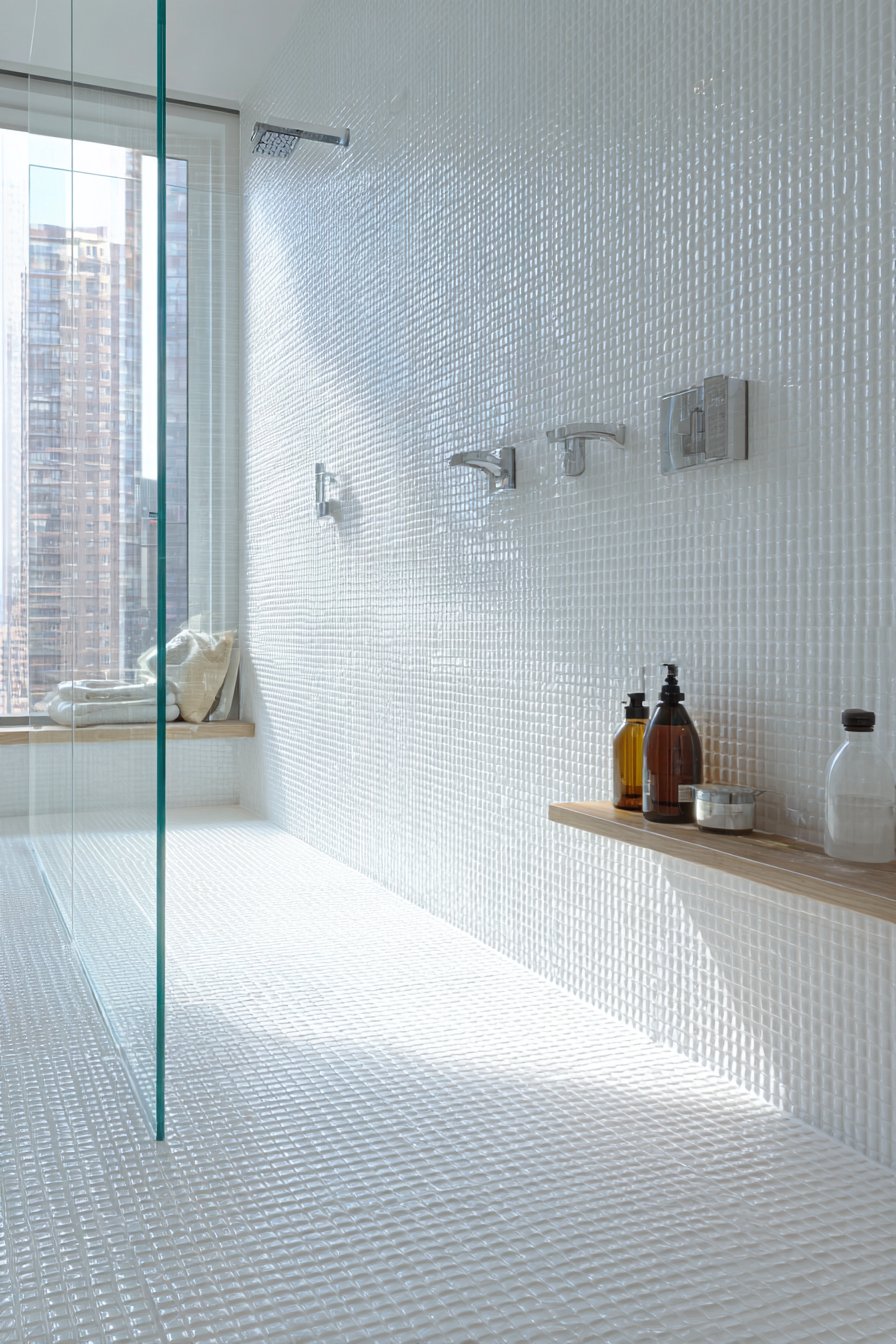 Proper waterproofing means water exposure becomes manageable rather than problematic. Quality tanking systems protect structural elements while allowing surface water to drain efficiently. Daily squeegee use on glass panels and walls takes minutes but prevents water spots and buildup. The simplified fixture arrangement means fewer items to clean around and maintain.