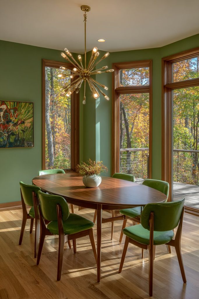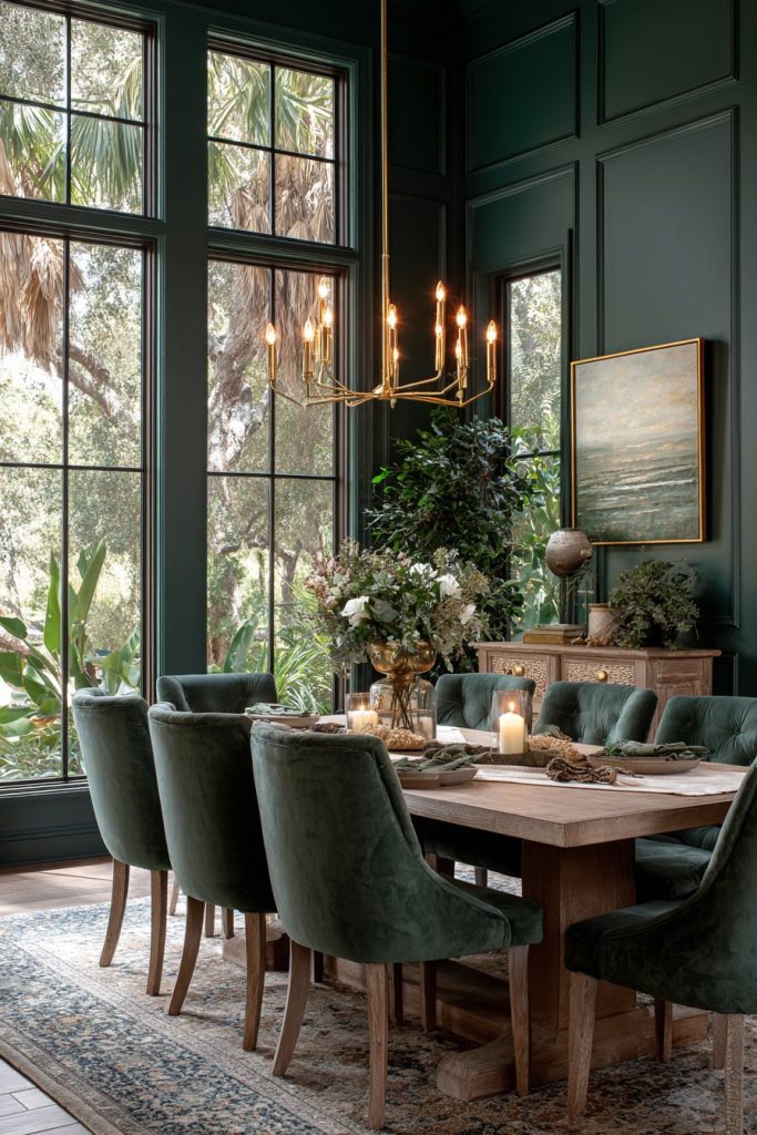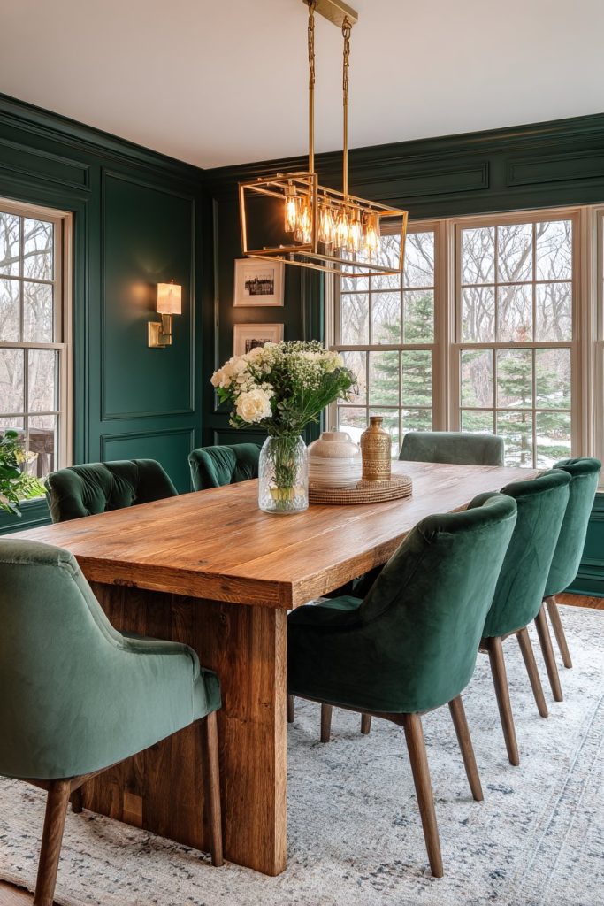 The sophistication of forest green elegance lies in its ability to create luxury without ostentation, making it perfect for homeowners who want impressive dining spaces that remain comfortable for daily use. This approach proves that deep, saturated colors can work in residential settings when balanced with appropriate lighting, natural materials, and metallic accents that prevent spaces from feeling heavy or overwhelming.