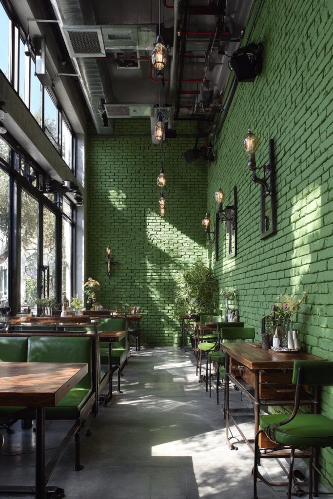 Exposed brick walls painted in matte olive green create the perfect fusion of industrial authenticity and contemporary color sophistication. This approach preserves the textural interest of brick while updating the color palette for modern living. Olive green’s earthy undertones complement the industrial aesthetic while adding warmth that prevents the space from feeling cold or institutional.