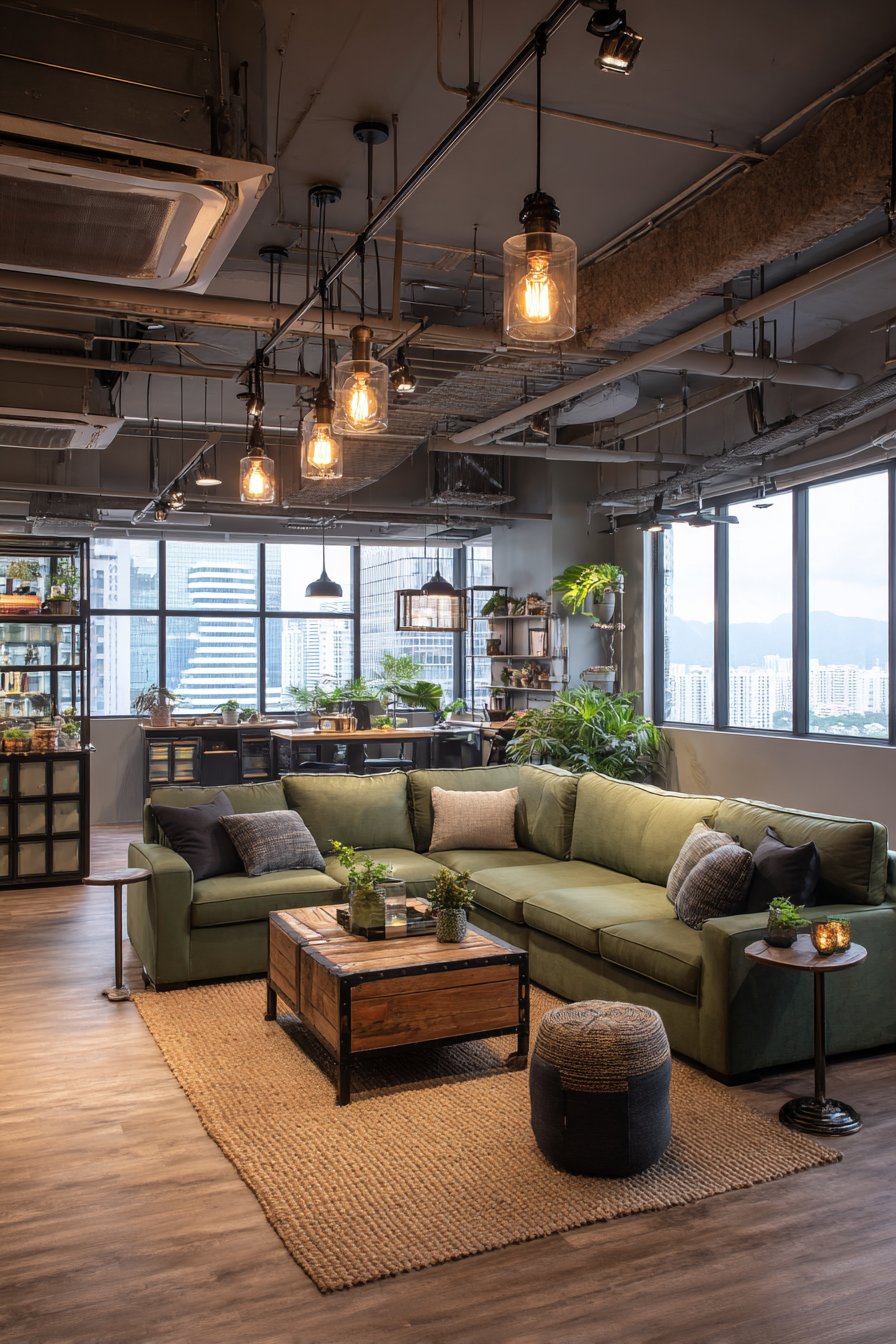 Key Design Tips: Embrace exposed materials rather than hiding them—exposed brick, ductwork, concrete, and metal pipes all contribute to authentic industrial character. Choose furniture that shows its construction methods, with visible welding, rivets, or joinery. Balance hard surfaces (concrete, brick, metal) with soft textiles on the sofa to maintain livability. Use oversized lighting fixtures to emphasize vertical space and industrial scale. Select a rich, saturated sofa color to prevent the space from feeling too cold or austere, ensuring the industrial edge doesn’t overwhelm comfort and warmth.