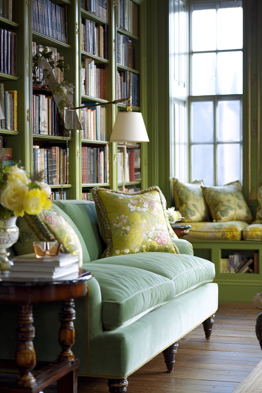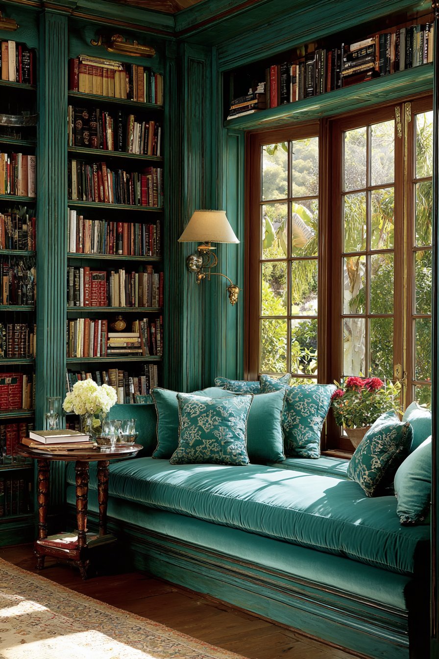 Key Design Tips: Choose seating with deep dimensions and excellent lumbar support for comfortable extended reading. Position reading furniture to maximize natural daylight during the day. Install adjustable task lighting for evening reading without eye strain. Include nearby surface for books, drinks, and reading accessories. Fill surrounding shelves with actual books you want to read or revisit. Consider a footrest or ottoman to support legs during long reading sessions. Choose calming colors like seafoam green that promote focus without distraction. Create visual connection between reading spot and book collection to inspire reading. Minimize digital distractions in the reading zone to protect focused time with physical books.