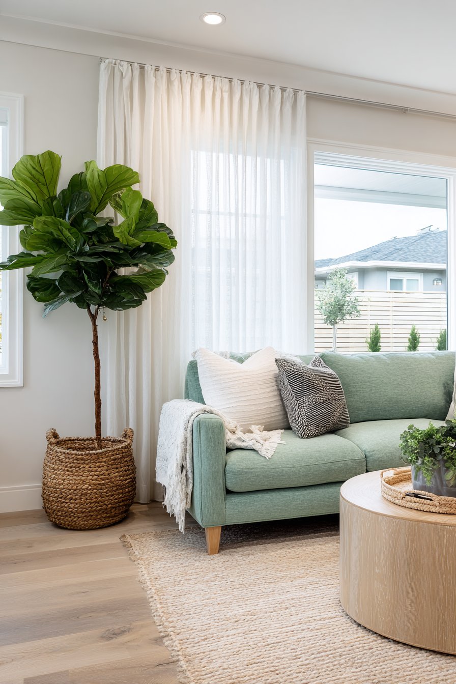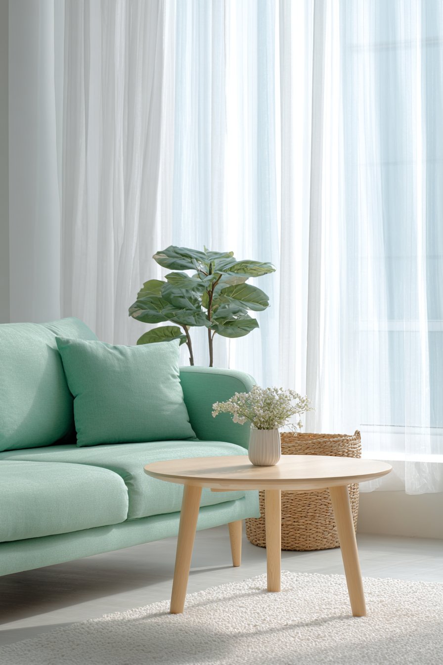 Key Design Tips: Embrace negative space as a design element rather than something to fill with furniture or accessories. Choose furniture with visible legs to maintain the airy feel characteristic of Scandinavian design. Invest in quality natural materials rather than synthetic alternatives—the difference is both visible and tactile. Keep the color palette limited, using variations of white, grey, and natural wood tones to support rather than compete with the mint green sofa. Prioritize natural light above all else, using minimal window treatments that allow maximum sunlight penetration while providing necessary privacy.