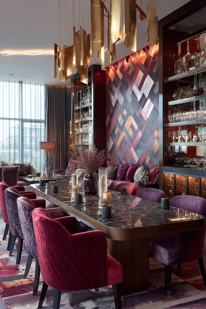 - Choose rich accent colors like burgundy and gold for luxury appeal