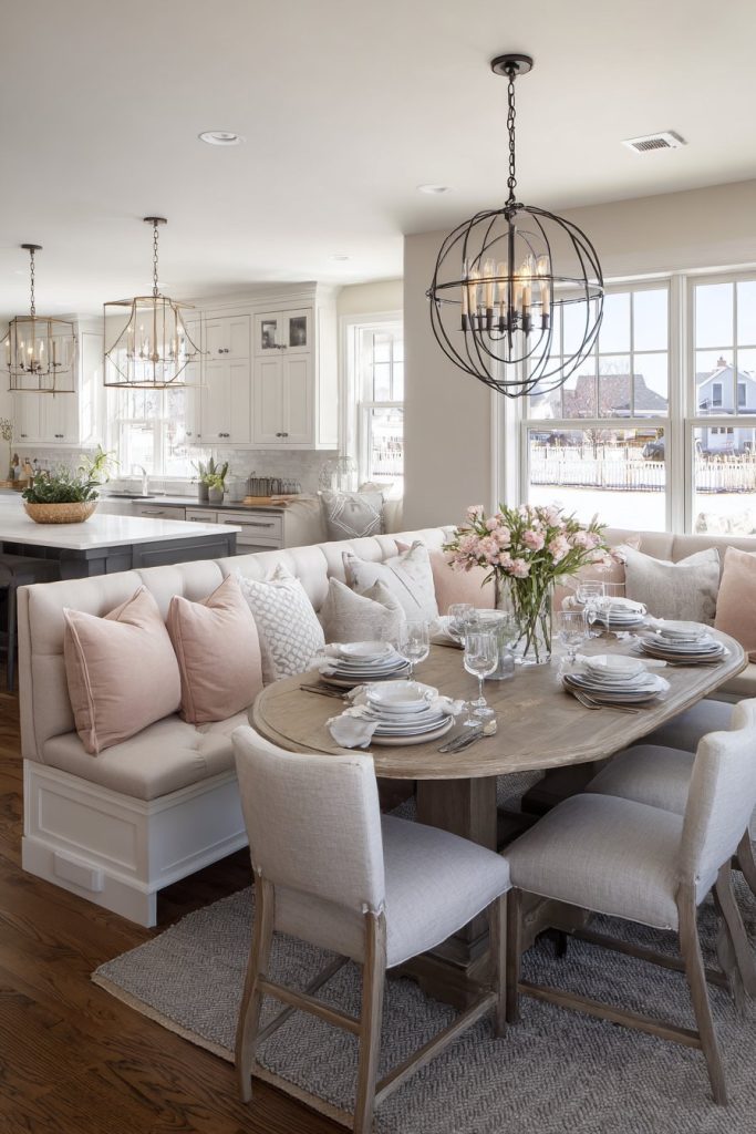 - Add built-in banquette seating for space efficiency and comfort