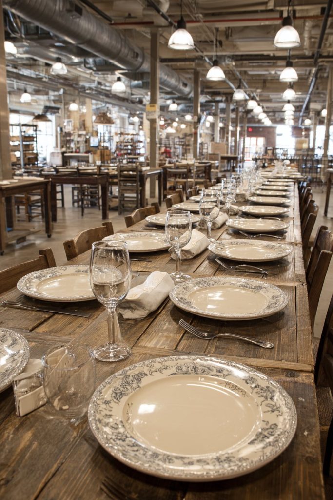 - Use live-edge tables to bring natural beauty and organic shapes into large, geometric spaces