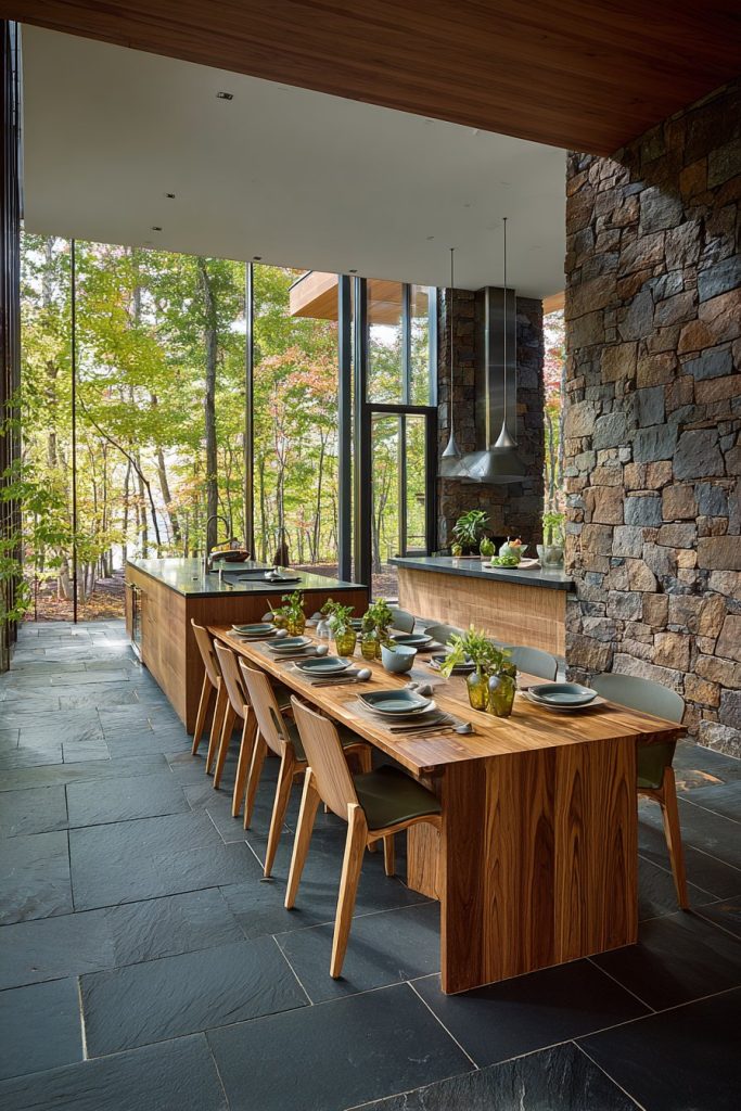 - Choose durable flooring materials like natural stone for high-traffic entertaining areas