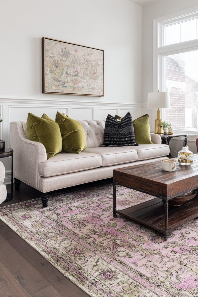 Transform your living room into an elegant retreat with a vintage-inspired Persian rug that showcases the timeless beauty of traditional craftsmanship. This sophisticated design approach demonstrates how classic rug styles can serve as stunning focal points while anchoring luxurious seating arrangements with rich color palettes and intricate detailing.