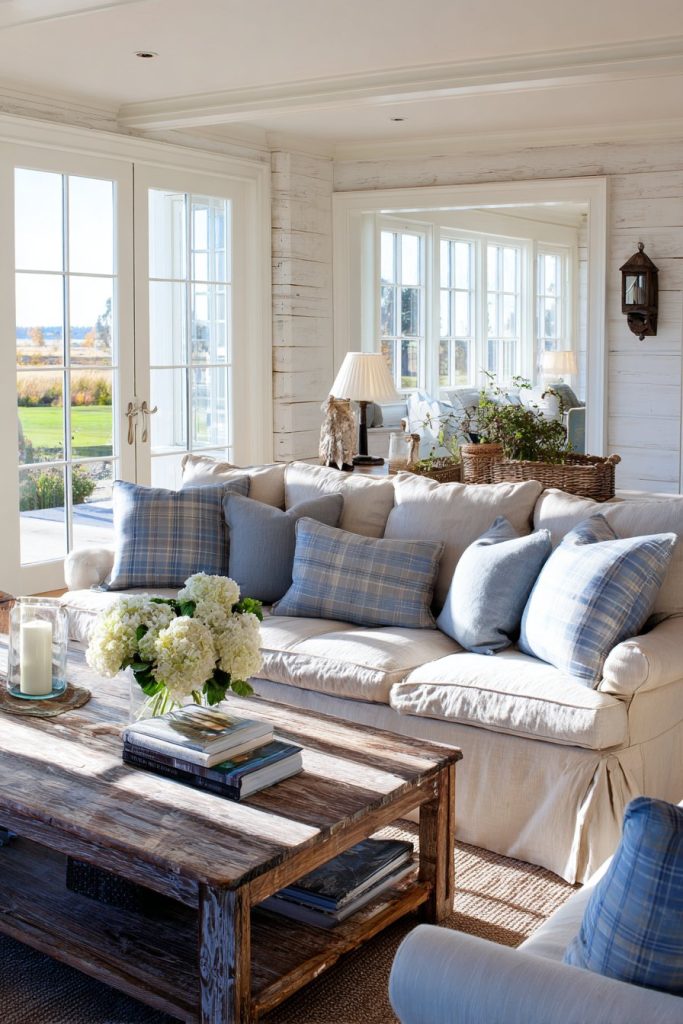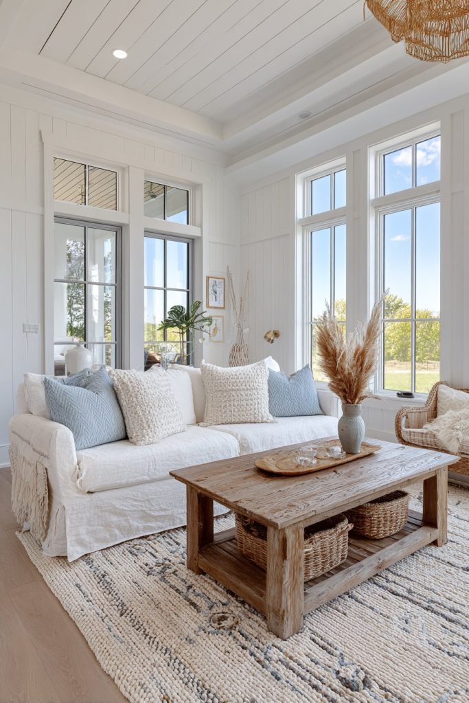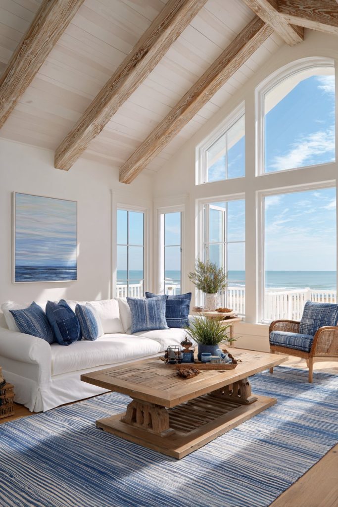 - Incorporate whitewashed furniture for light, airy coastal atmosphere