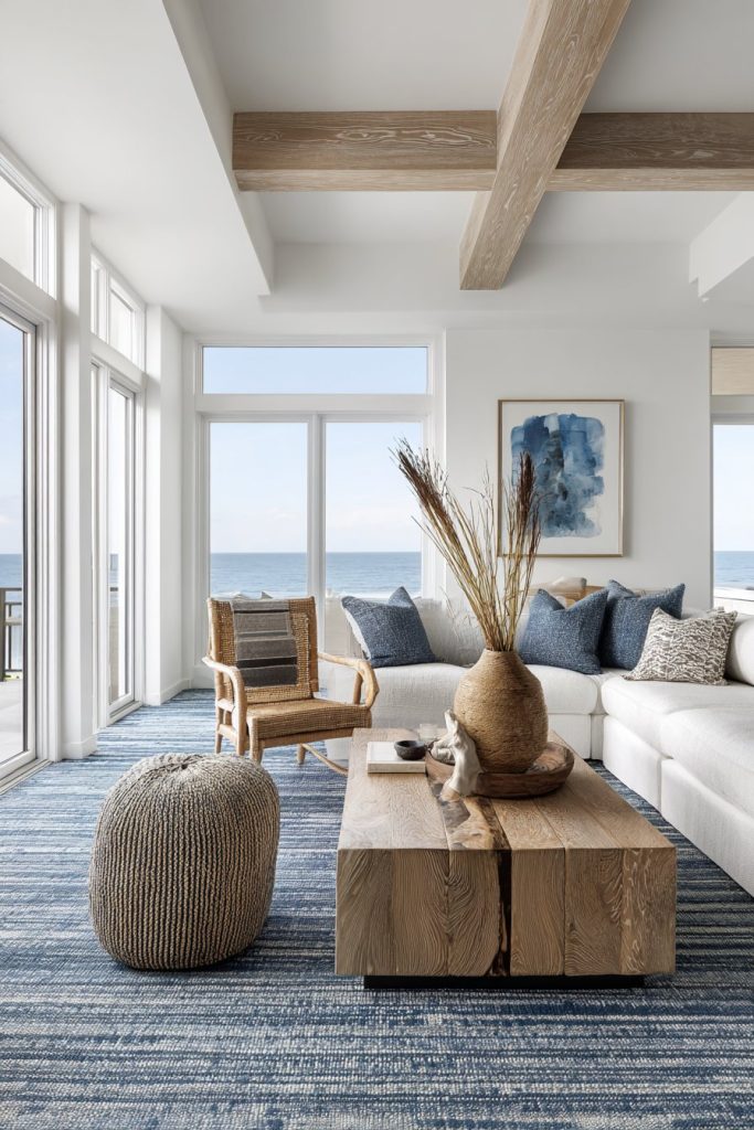 - Select natural fiber rugs for durability and casual coastal aesthetic