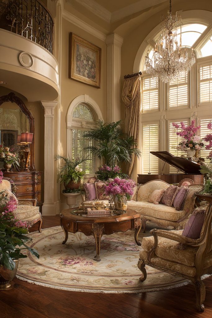 - Coordinate antique furniture with classical architectural details for authentic period atmosphere
