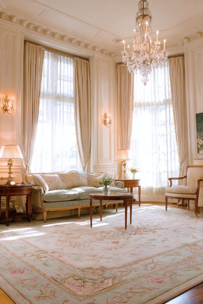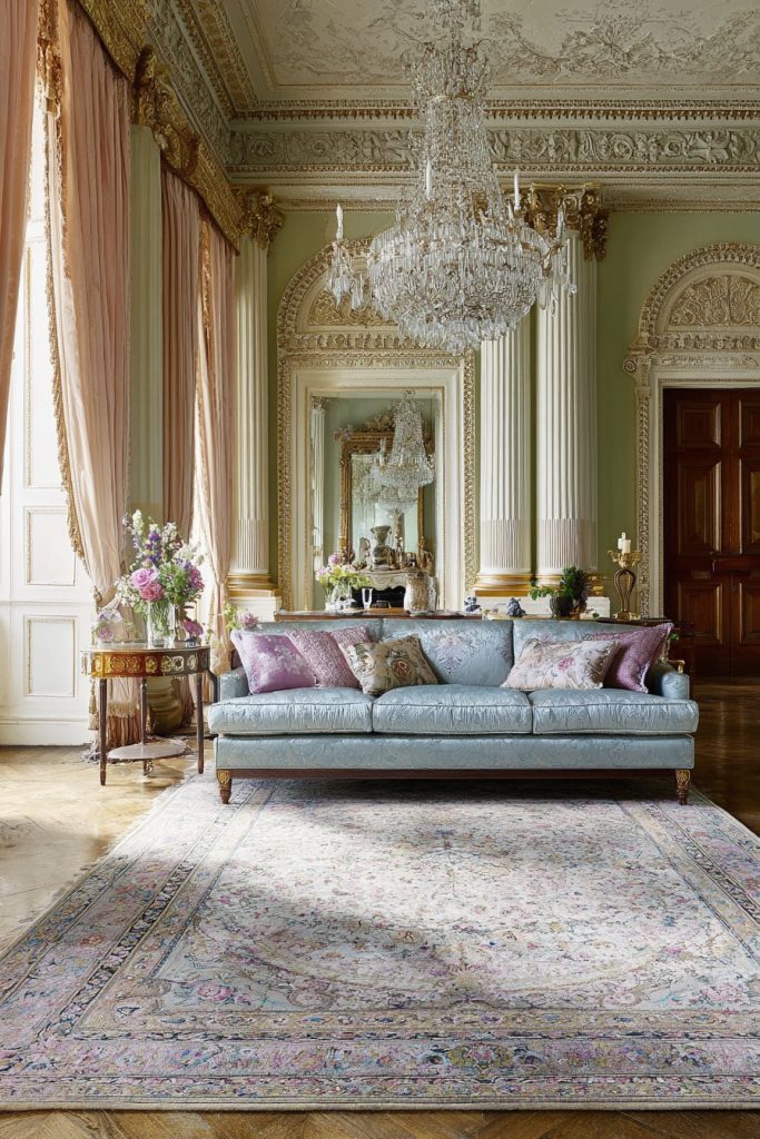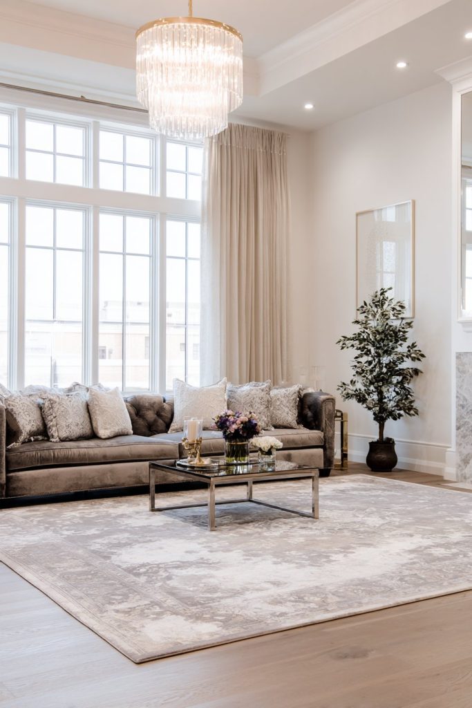 - Maintain proper proportions with oversized rugs for dramatic formal impact