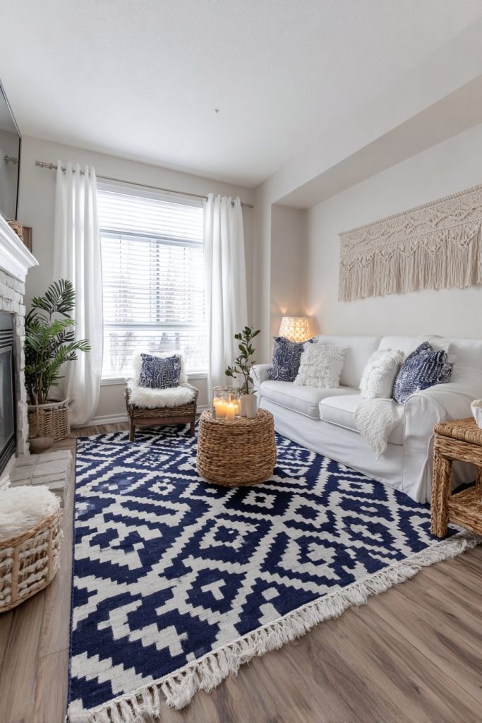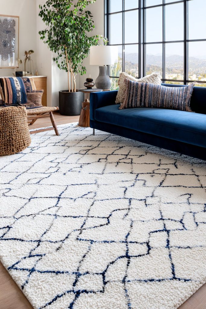 - Keep wall colors light and decor minimal to emphasize the rug as a focal point