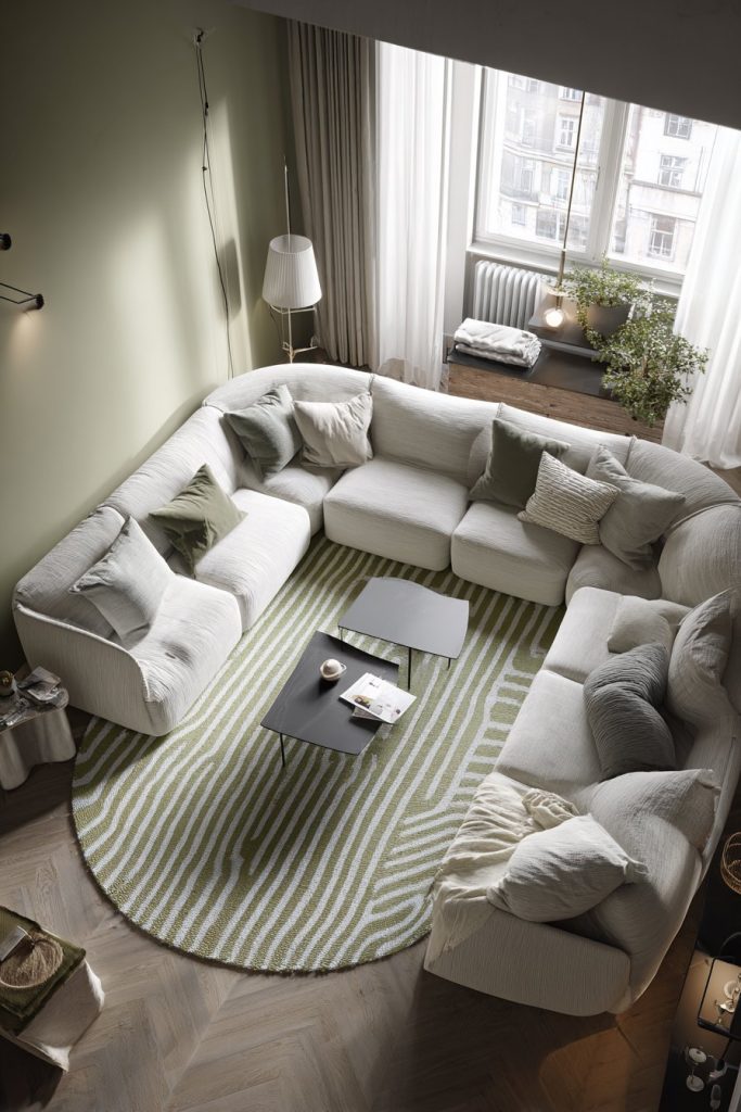 - Position furniture around the rug’s perimeter to create defined conversation areas
