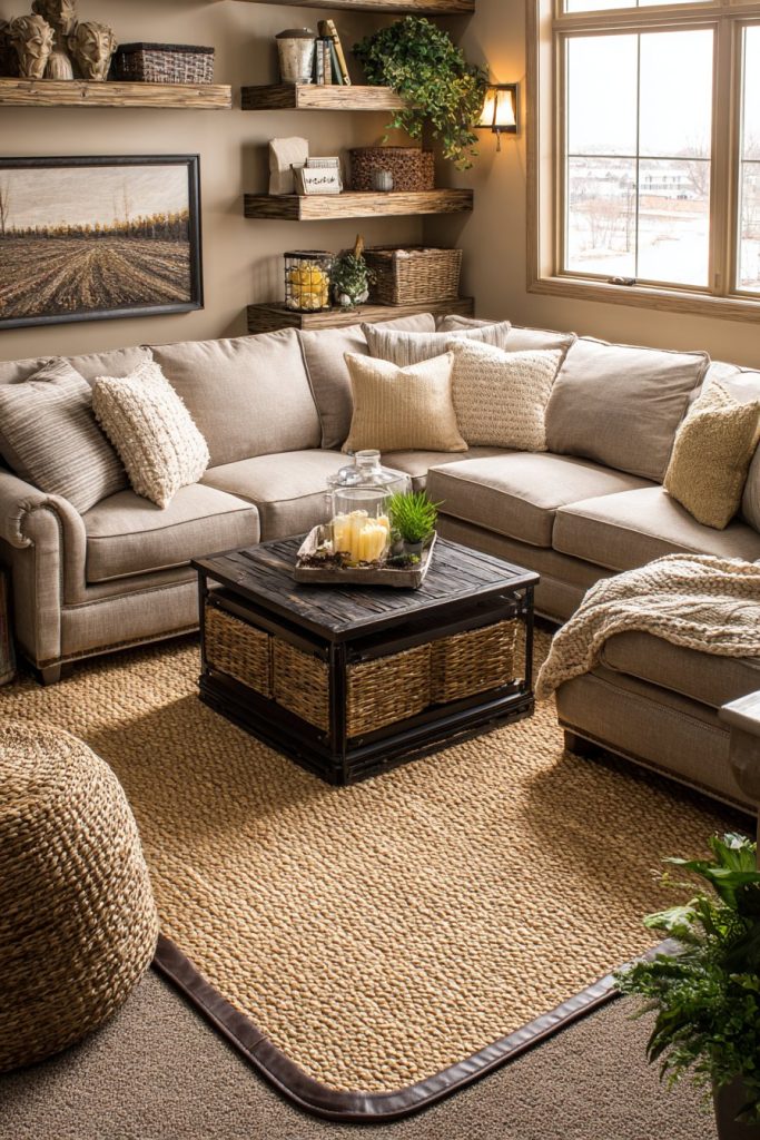 Maximize the impact of limited square footage with clever space-planning and a thoughtfully chosen round woven rug that demonstrates how proper rug selection can enhance rather than overwhelm small living areas. This design approach proves that size constraints don’t mean sacrificing style or functionality when you understand how to work with your space’s proportions.