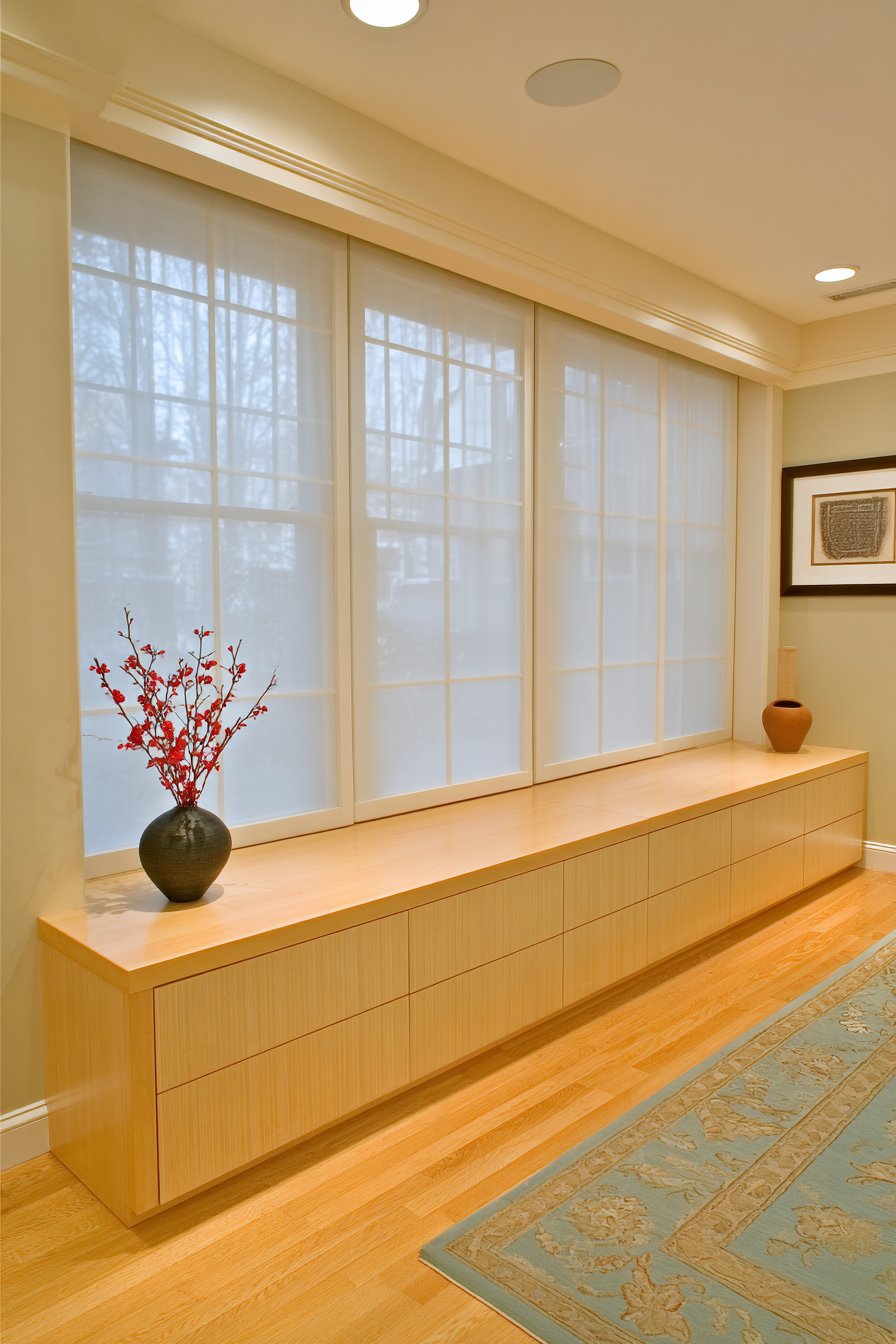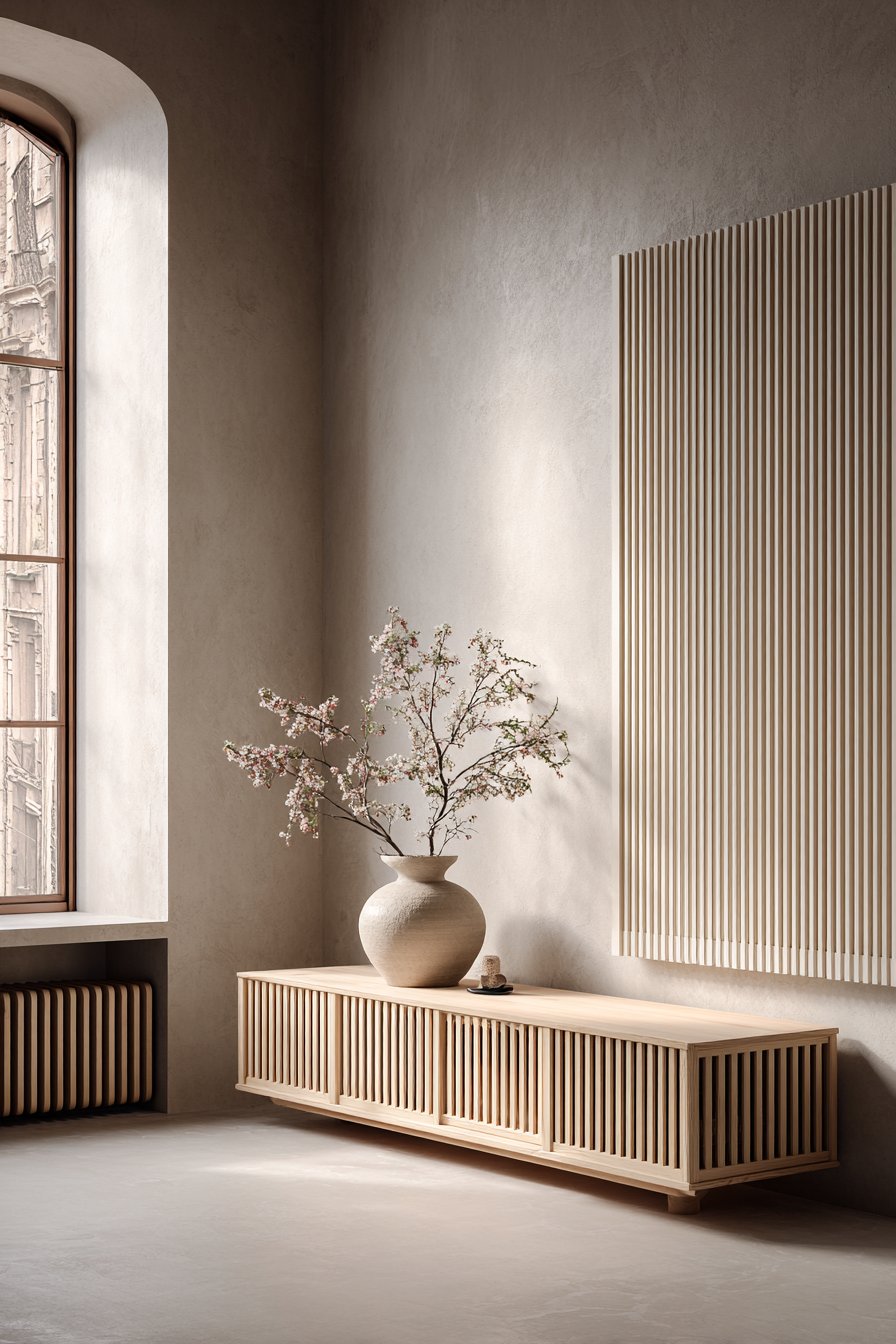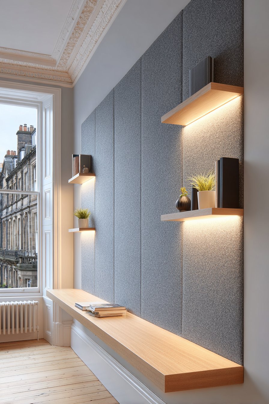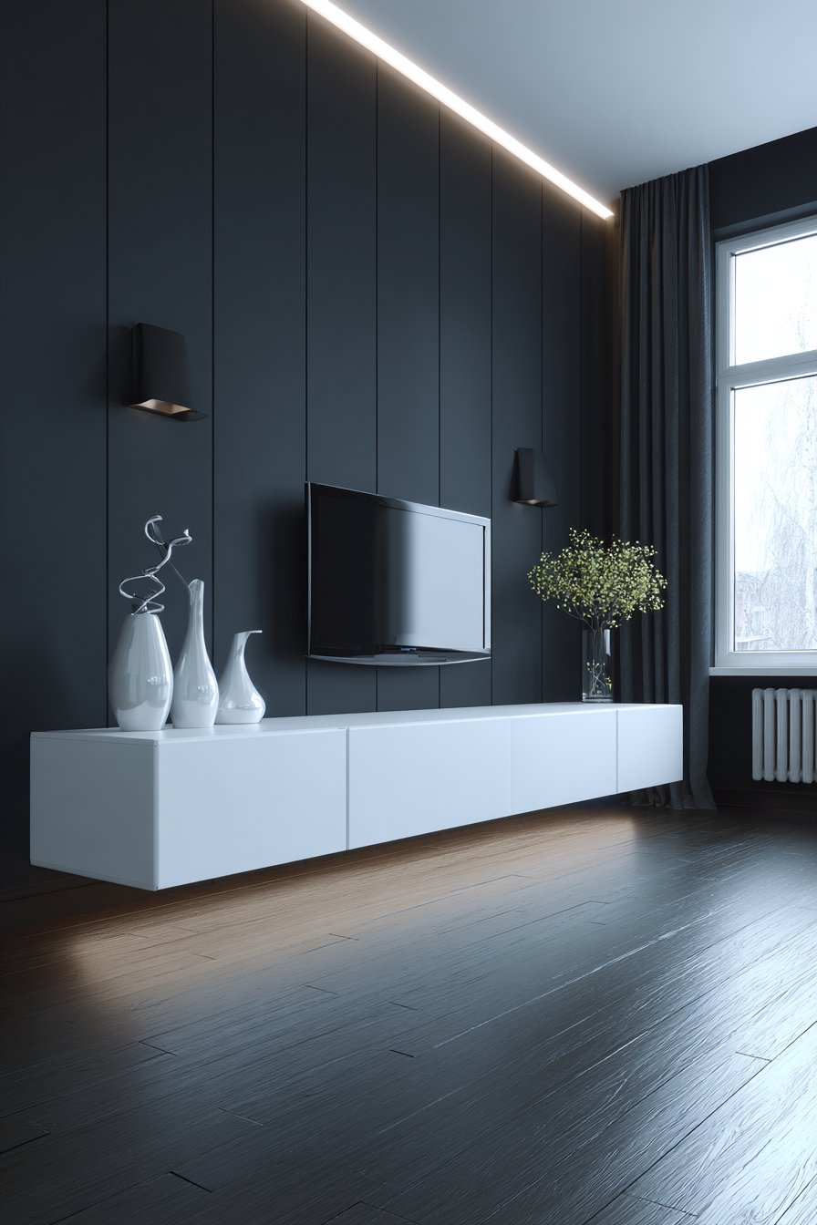 1. Minimalist Floating Console with Acoustic Paneling