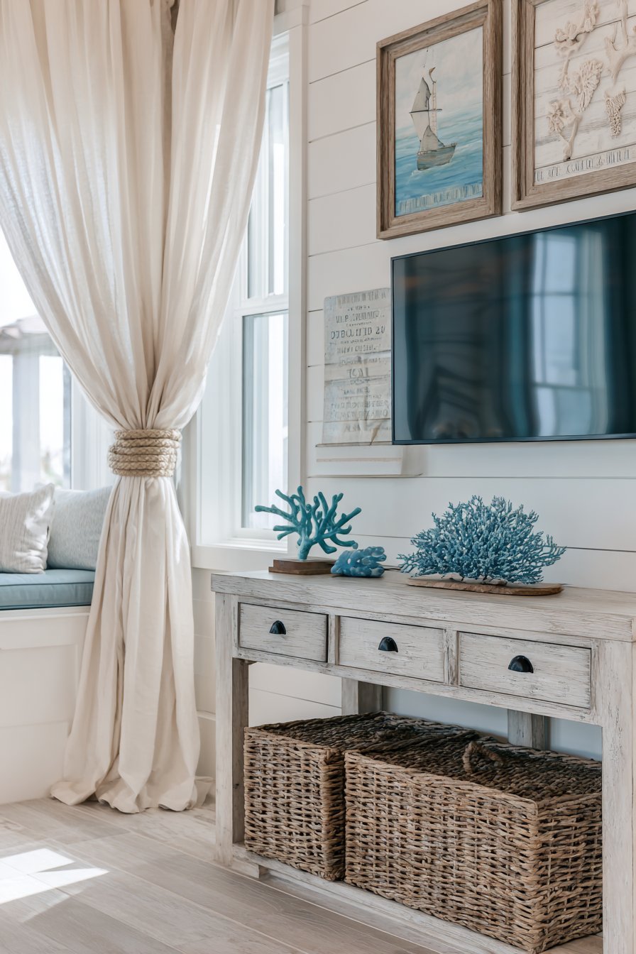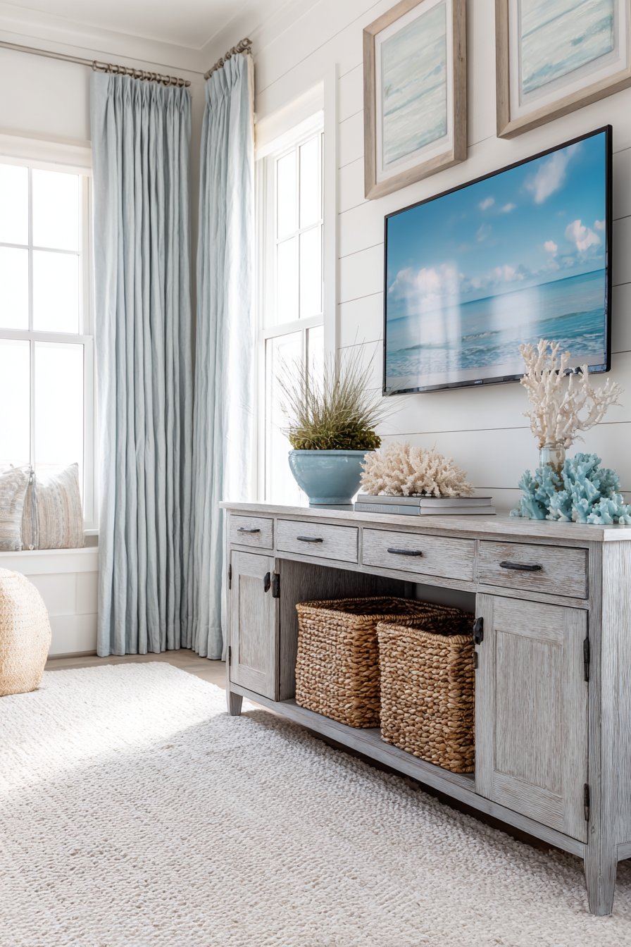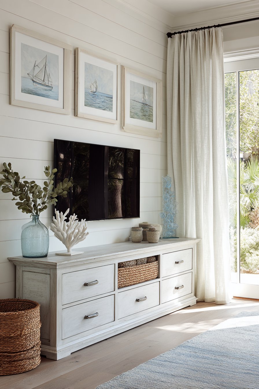 Personal expression transforms generic storage into meaningful home design. The eclectic mixed-material approach celebrates collections and travel memories. The library-integrated design honors book collections and literary appreciation. The bohemian plant-filled design reflects connection with nature and global cultures. The art deco geometric mirrors demonstrate appreciation for specific historical periods. The coastal driftwood console evokes beach memories and vacation serenity. The best media walls tell personal stories through material choices, displayed objects, and overall aesthetic direction.