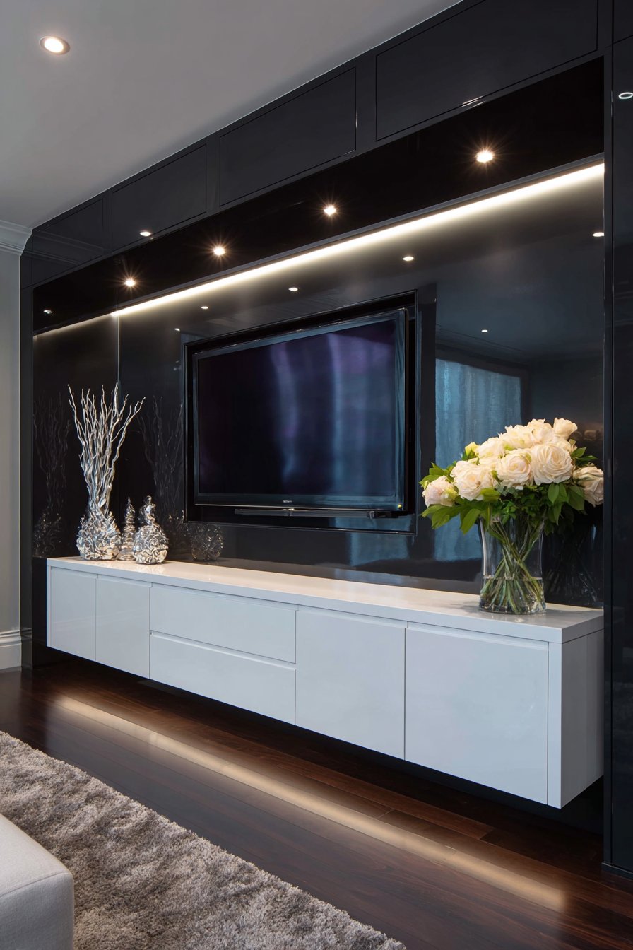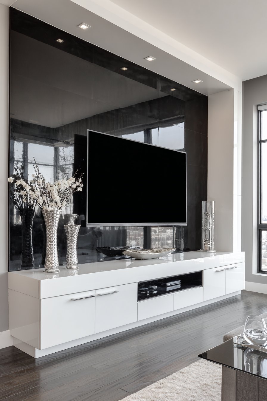 Scale appropriateness ensures media walls enhance rather than overwhelm spaces. The small apartment corner solution acknowledges spatial constraints while maintaining function and style. The luxury marble installation suits large rooms with high ceilings where substantial elements feel appropriate. The low Japanese console reflects cultural proportions and human-scale furniture traditions. The vertical modular system maximizes height in rooms where width is limited. Properly scaled media walls feel intentional rather than forced.