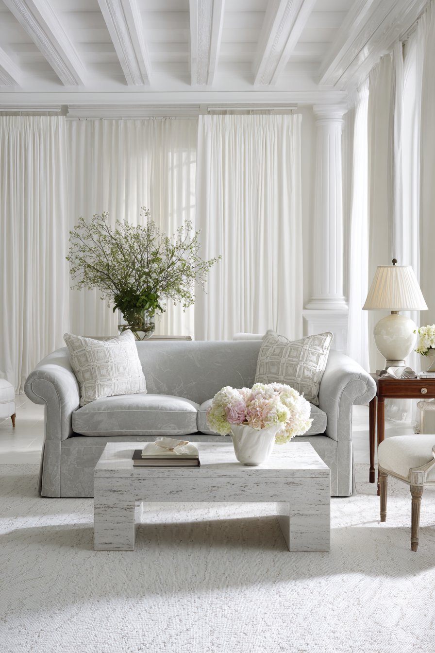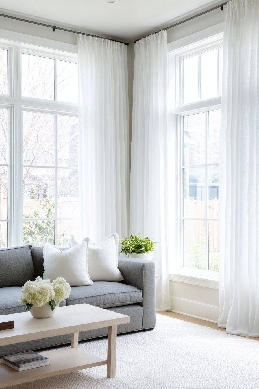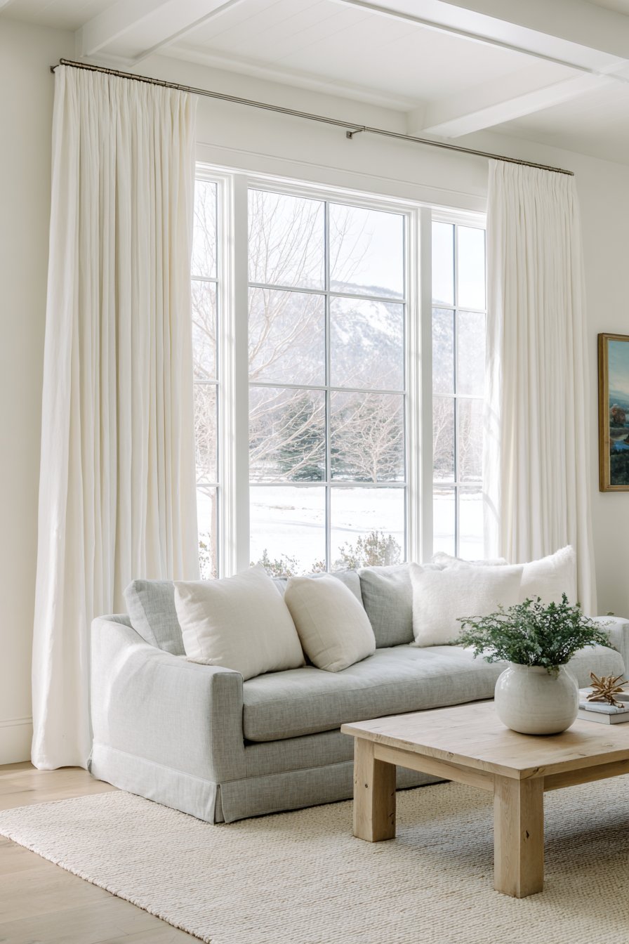 - Choose Belgian linen or similar natural fiber curtains for authentic texture that prevents white from appearing flat or clinical